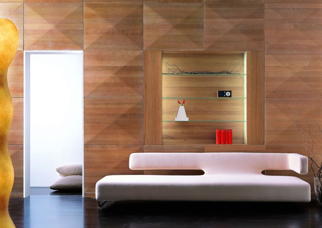 Λοιπόν, όπως για τις σύγχρονες λύσεις σχεδιασμού, τότε μπορούν να βασίζονται σε μια ποικιλία επιλογών. Αυτά είναι απλά ορθογώνια δομοστοιχεία με καπλαμά (βλΕπένδυση από καπλαμά για επένδυση τοίχου - η ομορφιά του ξύλου στο εσωτερικό σας), πλαστικοποιημένη ή βερνικωμένη επιφάνεια, τεχνητά παλαιωμένη, καθώς και συνδυασμένη, στην οποία το δέντρο ταιριάζει καλά με γυαλί, μέταλλο, δέρμα.
