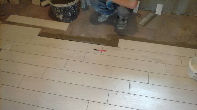 - Στενά ορθογώνια πλακάκια και "ζητά" να τοποθετήσουν τις ραφές σε μια σειρά, εξομοιώνοντας τοιχοποιία ή ξύλινο δάπεδο από μια σανίδα καταστρώματος. Ήταν αυτή η επιλογή που επιλέξαμε όταν αντιμετωπίζουμε τις εν λόγω εγκαταστάσεις.