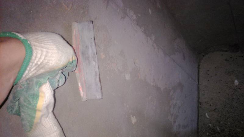 - Πάρτε μια σπάτουλα στα χέρια σας και αρχίστε να περνάτε συστηματικά από ολόκληρη την επιφάνεια των τοίχων, προσπαθώντας να ξύσετε όλες τις αναπτύξεις στο μηδέν. Εάν κάτι δεν λειτουργεί με μια σπάτουλα, μπορείτε να εργαστείτε λίγο με ένα σφυρί (αξίνα) ή μια γροθιά.