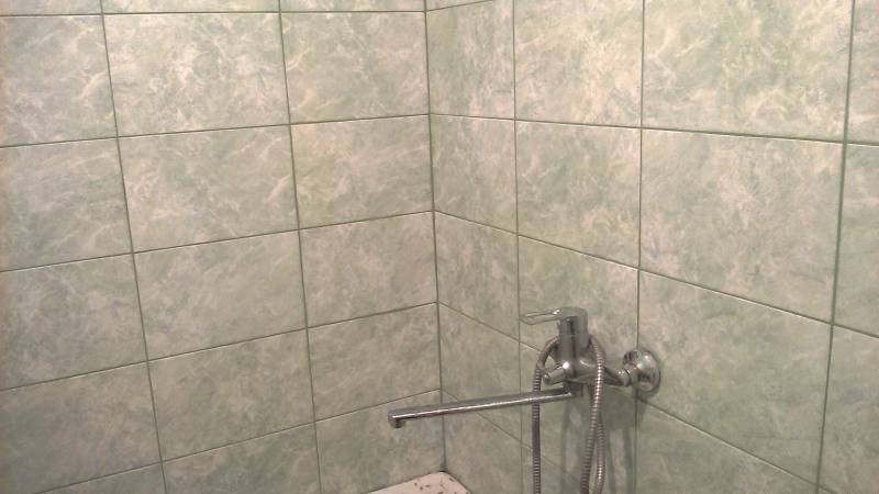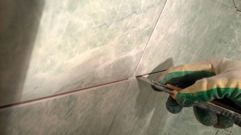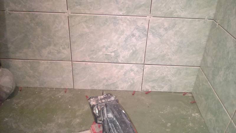 Αφού στεγνώσει το πάτωμα (ο πρώτος περίπατος είναι δυνατός μετά από μία μέρα), αναφέρουμε το υπόλοιπο πλακίδιο στους τοίχους και προχωρούμε στον καθαρισμό των αρμών.