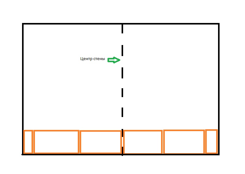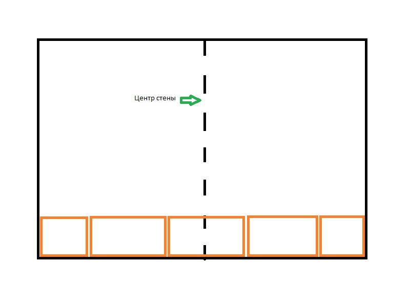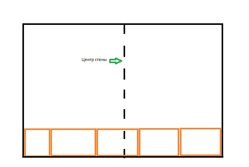 - Και τέλος, ο τελευταίος τρόπος για να σχεδιάσετε είναι να κεντράρετε το ίδιο το πλακίδιο. Βρίσκουμε επίσης τη μέση του τοίχου, αλλά τώρα αλλάζουμε τη ραφή σε σχέση με το κέντρο κατά το ήμισυ του μήκους του πλακιδίου. Με άλλα λόγια, το μέσο του πλακιδίου πρέπει να ταιριάζει με την ετικέτα που προκύπτει. Αυτή η διανομή μοιάζει με την προηγούμενη έκδοση, με τη διαφορά ότι η ραφή θα μετατοπιστεί από το μισό πλακίδιο.