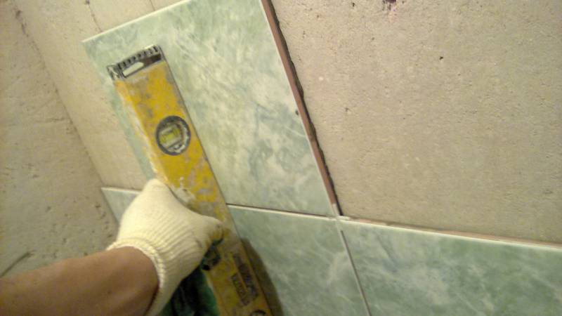 - Τώρα πρέπει να ευθυγραμμίσετε το επίπεδο του πλακιδίου και του σοβά. Για να το κάνετε αυτό, ακολουθήστε τον κανόνα και εφαρμόστε στην επιφάνεια του πλακιδίου πρώτα οριζόντια και έπειτα κάθετα. Βεβαιωθείτε ότι η απόσταση από τον κανόνα έως τον γύψο δεν αλλάζει - εάν είναι απαραίτητο, πατήστε ή τραβήξτε την επιθυμητή άκρη. Δεν χρειάζεται πλέον να ανησυχείτε για το επίπεδο, αυτό πρέπει να ληφθεί υπόψη στο στάδιο της ισοπέδωσης του τοίχου.