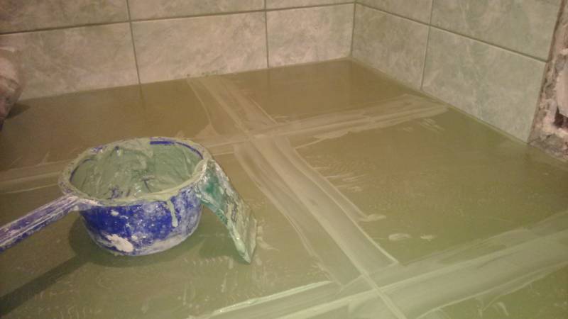 Το επόμενο βήμα είναι η τοποθέτηση πλακιδίων δαπέδου. Μην ξεχνάτε ότι το στρώμα κόλλας δεν πρέπει να ξεπερνά τα 2 εκατοστά, σε περίπτωση μεγάλων διαφορών, θα πρέπει να προ-ισοπεδώσετε τη βάση με τη βοήθεια του μαζικού δαπέδου.