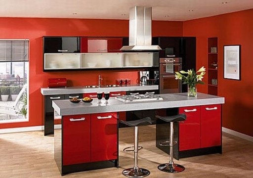 Το πλούσιο κόκκινο χρώμα της κουζίνας φαίνεται υπερβολικό. Αλλά ένα τόσο φωτεινό χρώμα, με συνεχή έκθεση, μπορεί να προκαλέσει ερεθισμό και επιθετικότητα.