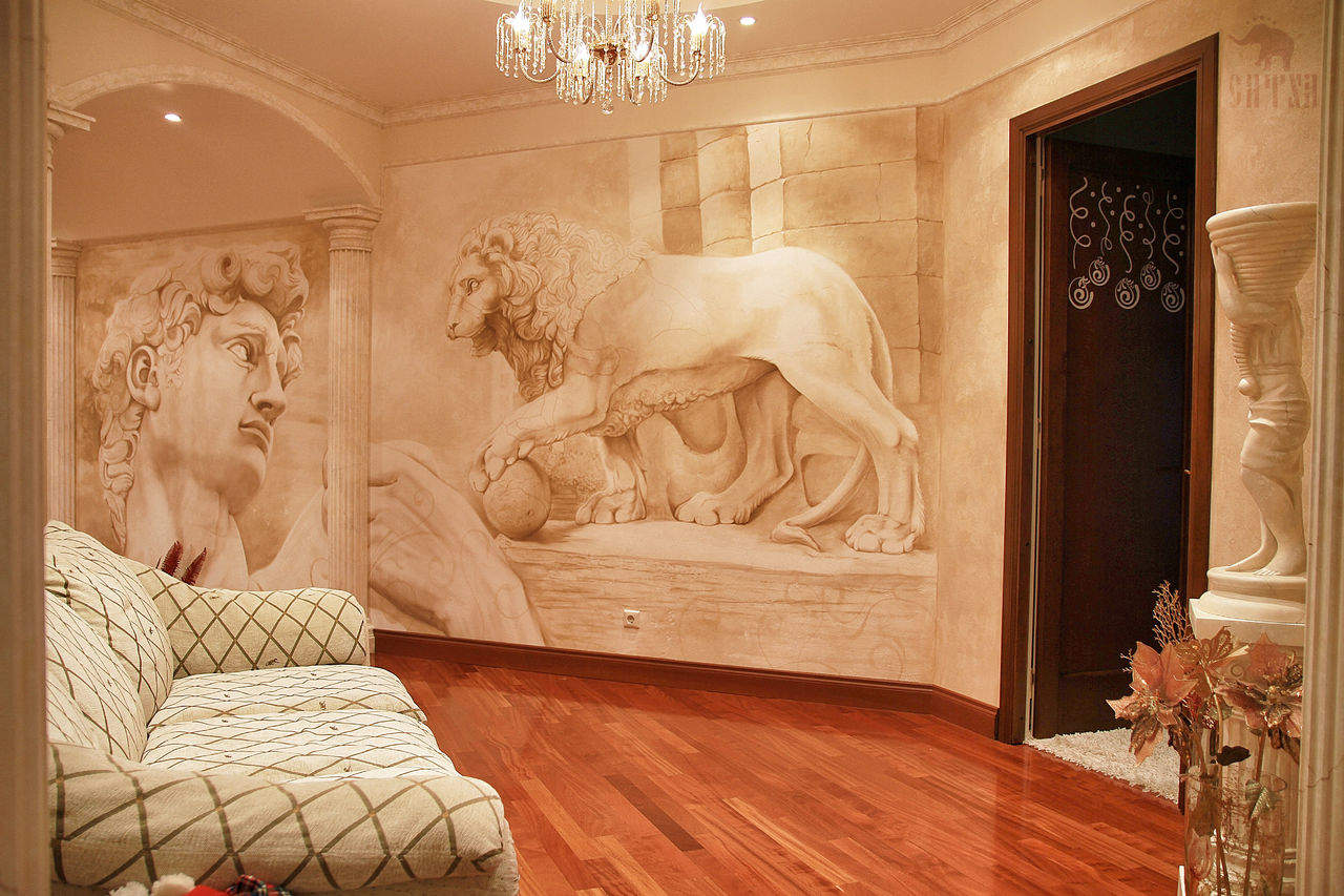 Τοιχογραφίες τοίχου με τοιχογραφία μπορούν να απεικονίσουν πιο μοντέρνες σκηνές που θα φαίνονται υπέροχες σε μοντέρνα εσωτερικά στυλ. Αν και, φυσικά, η τοιχογραφία είναι μια εκλεπτυσμένη κλασική και ευγενή πολυτέλεια.