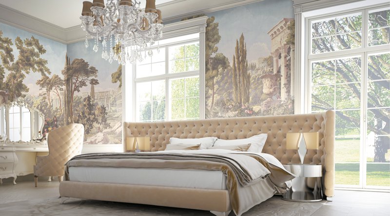 - Για την κρεβατοκάμαρα, προτιμάται ηρεμία, κατά προτίμηση φυσική (βλέπεΤοιχογραφία της φύσης για το σχέδιό σας.), οικόπεδα σε φωτεινά και ζεστά χρώματα.