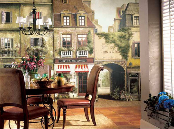 - Τοιχογραφίες με την εικόνα ενός δρόμου καφέ σε μια παλιά ή σύγχρονη πόλη είναι πολύ κατάλληλες για την κουζίνα.