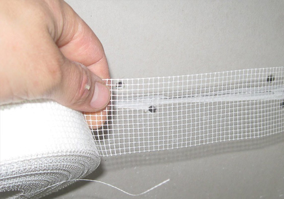 - Ρωγμές σε σκυρόδεμα, ραφές μεταξύ φύλλων γυψοσανίδας, αυλακώσεις με βίδες και άλλα ελαττώματα τοίχου καλύπτονται με δίχτυ βαφής. Τοποθετείται ανάμεσα σε δύο στρώματα στόκου. Το πρώτο στρώμα πριν από την εφαρμογή του επόμενου πρέπει να στεγνώσει.