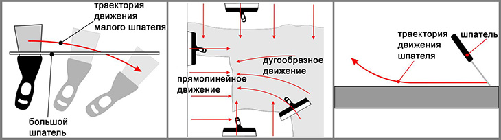 - Το διάγραμμα δείχνει την τροχιά της σπάτουλας κατά την εφαρμογή του στόκου φινιρίσματος. Οι ειδικοί προτείνουν τη χρήση τέτοιων κινήσεων, καθώς θα διευκολύνουν την εργασία και θα παρέχουν μια πιο ομοιόμορφη στρώση του μείγματος.