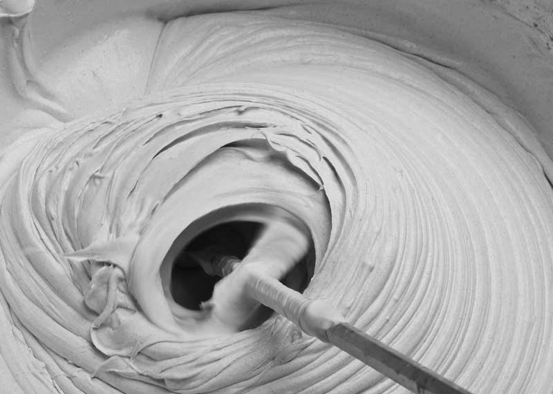 - Το ξηρό μείγμα ζυμώνεται αυστηρά σύμφωνα με τις οδηγίες, προκειμένου να εξαλειφθούν τα κομμάτια και να δοθεί στο στόκο μια ομοιόμορφη, πλαστική συνέπεια, συνιστάται να το κάνετε αυτό με ένα μίξερ κατασκευής ή ένα τρυπάνι με ειδικό ακροφύσιο.