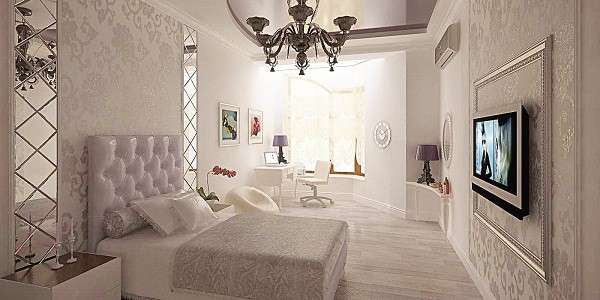 Προσοχή: Εάν θέλετε το υπνοδωμάτιο να φαίνεται εντυπωσιακό, σας συμβουλεύουμε να καλύψετε τους τοίχους του δωματίου με ταπετσαρία χωρίς ραφή σε ύφασμα με λεπτό χρώμα.