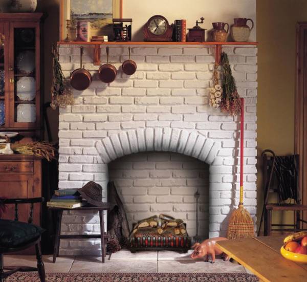 - Μπορείτε να εφαρμόσετε ένα λευκό τούβλο. Διακοσμητικά φινιρίσματα Ένα τέτοιο τζάκι θα είναι η διακοσμητική τοιχοποιία ενός τέτοιου δομικού υλικού.