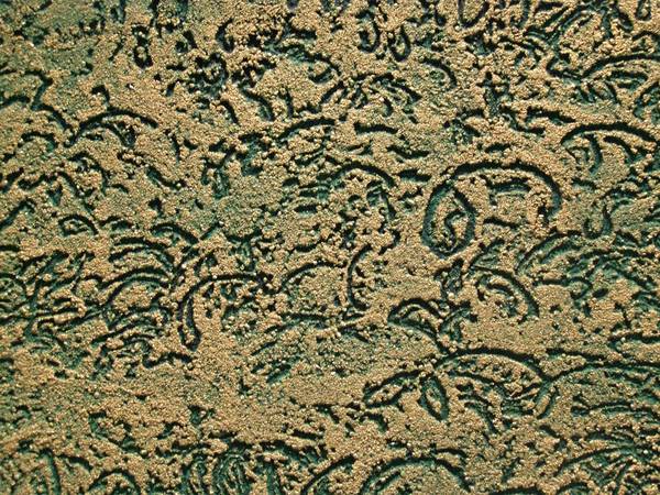 Η υφή αυτού διακοσμητικό γύψο δύο στρωμάτων: κατά τη διάρκεια της διαδικασίας ευθυγράμμισης, οι στερεοί ορυκτοί κόκκοι κινούνται στο πάχος του διαλύματος, αφήνοντας πίσω ίχνη που μοιάζουν με τις χαοτικές κινήσεις του σκαθάρι του φλοιού.