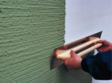 - Η επιφάνεια του τοίχου υποβάλλεται σε επεξεργασία με σπάτουλα.