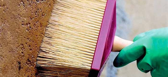 - Μετά την ξήρανση, τα τοιχώματα καλύπτονται με σκληρή πλαστική βούρτσα για την απομάκρυνση της σκόνης και των ξηρών θραυσμάτων του διαλύματος.