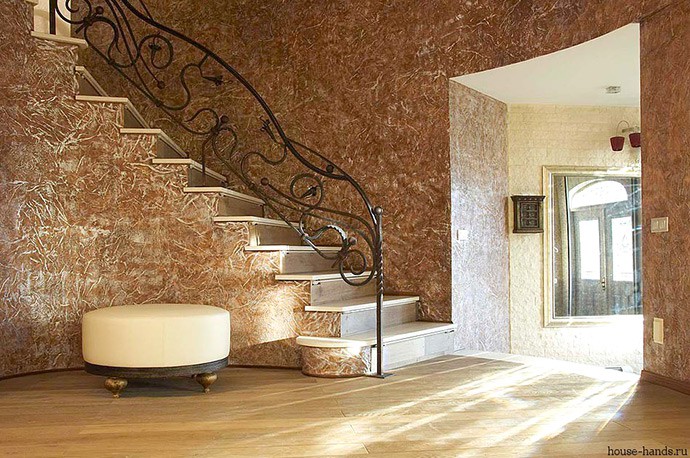Η ολοκλήρωση της σκάλας, καθώς και του λόμπι, με διακοσμητικό γύψο, είναι η πιο αποδεκτή επιλογή για επένδυση τοίχου σε αυτά τα δωμάτια. Το κύριο πράγμα είναι ότι η διαδικασία ολοκλήρωσης της εργασίας πραγματοποιήθηκε αποτελεσματικά, σύμφωνα με όλες τις τεχνολογικές αποχρώσεις - τότε το αποτέλεσμα σίγουρα θα σας ευχαριστήσει.