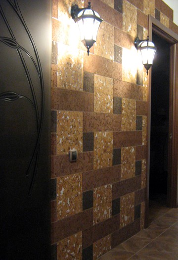 - Αυτό το φυσικό υλικό είναι φιλικό προς το περιβάλλον και ασφαλές, έχει μια ιδιαίτερη δομή και παράγεται σε πολλές παραλλαγές υφής και χρωμάτων, τα οποία επιτρέπουν όχι μόνο την επιφάνεια της επιφάνειας, αλλά και τη δημιουργία πάνελ πάνω τους.