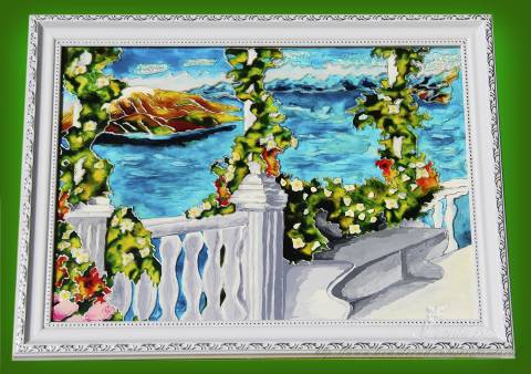 - Tiffany style mural - the contour is applied using a felt-tip pen, then paints are poured carefully, without crawling out of the contour. The drawing is three-dimensional.