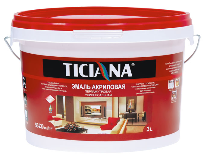 - As a base for a layer of nacre, it is advisable to use TICIANA interior water-dispersible paints “washable” or “moisture-proof” in rooms — although there are other options.
