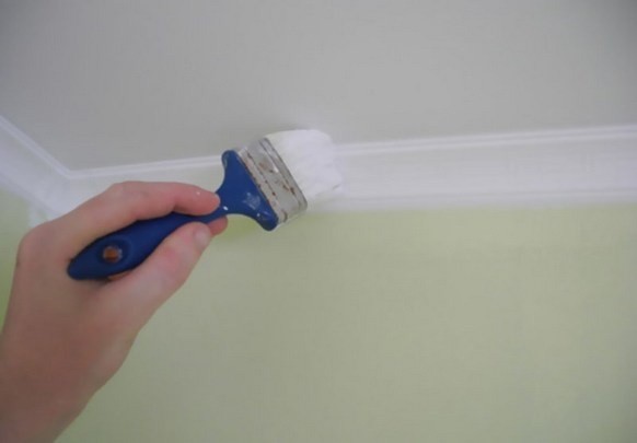 Before describing how to paint ceiling skirting boards, let's think about when to do it. There are several options: before they are fastened to the joint of the wall and ceiling; after installation, but before wall decoration; after finishing the walls and ceiling.
