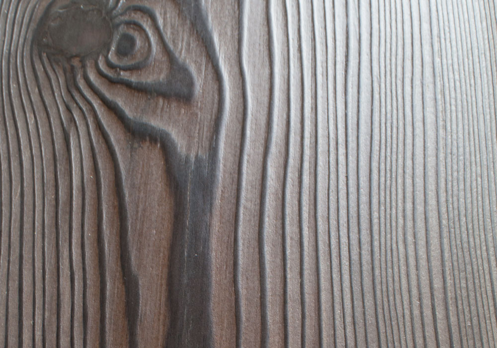 Also, a similar effect is achieved by removing soft wood fibers. To do this, the surface of the board is cleaned with a metal brush, and sanded with fine sandpaper. For sharper contrasts, you can lightly burn the surface with a gas burner.