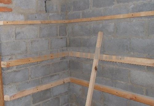 - For correct installation in height, you should use the fishing line, which is stretched along the diagonals of the plane. We do height adjustment with the help of gaskets made of wood;