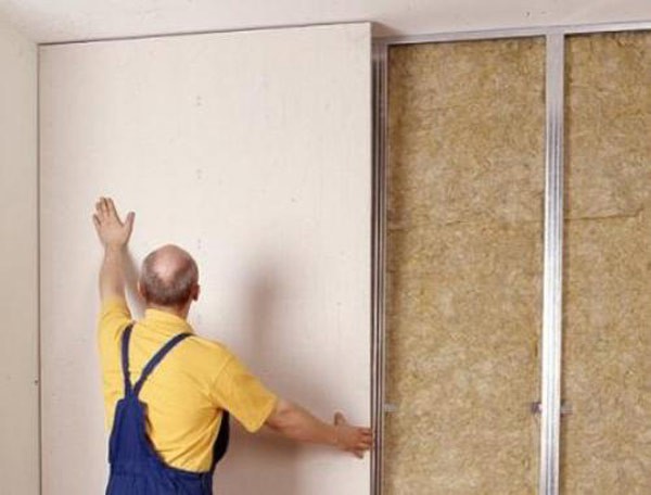 Tip. In the process of attaching drywall sheets to the surface of the metal frame, insulation and insulation are simultaneously carried out. To do this, sheets of polystyrene or any other material are inserted into the cells of the crate. They should fit snugly into them.