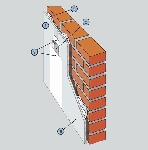 - Facing with gypsum plasterboard may not be performed on the entire surface.