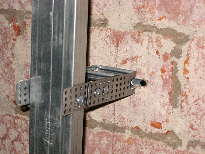 - Fasten along the marking the guide profiles of the PNP. The step between the attachment points is about half a meter;