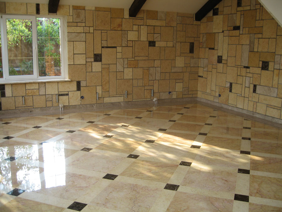 - Initially, a layer of cement mortar is applied to the surface and slabs are recessed into it. natural stone.