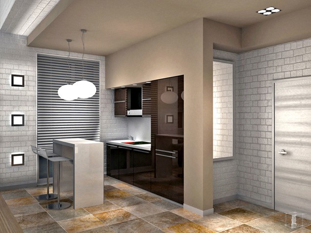 The monotony of such a finish is broken by doors, lamps and frames of paintings of a contrasting color.