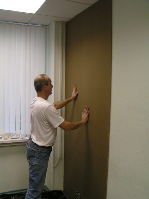 Fiberboard cladding panels are first cut to size. Then they are smeared with glue suitable for the given surface and glued to the wall along a vertical line marked in advance on it.