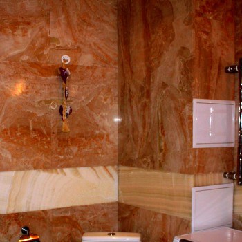 Marble tiles are used both for exterior and interior decoration. Facing with marble tiles gives the room a respectable appearance and aristocracy.