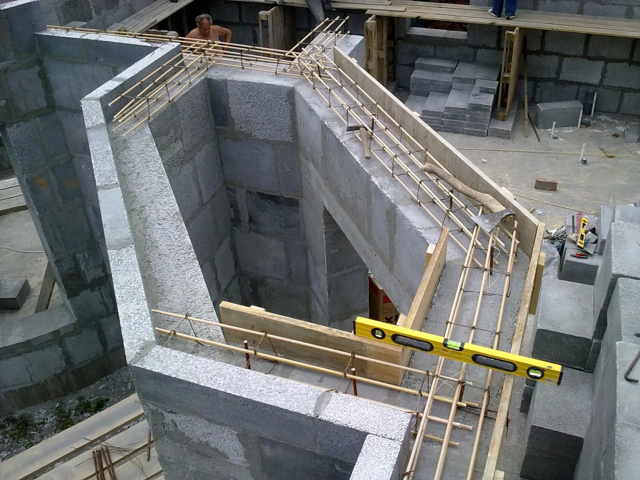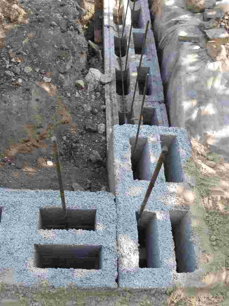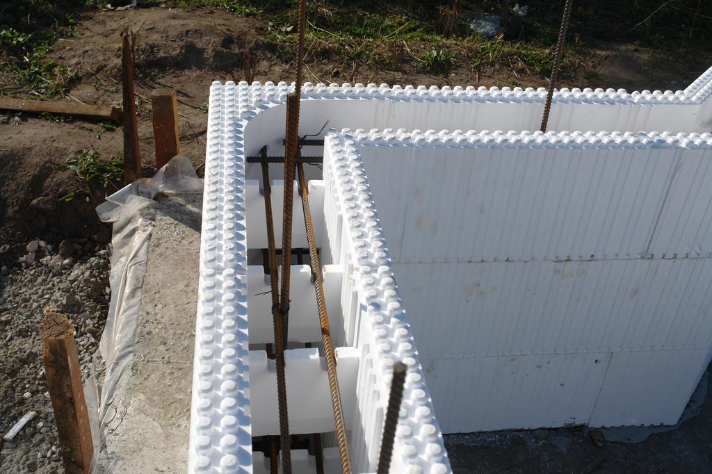 - Production of a strip foundation for a private house from polystyrene concrete blocks