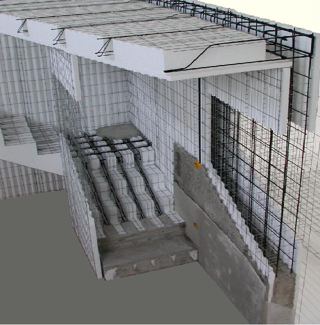 - After all, the technology for the construction of prefabricated monolithic walls involves filling the vertical masonry channels with reinforcement and concrete, which, in fact, will absorb operational loads. For polystyrene concrete formwork, a completely different task is defined here: it will elementarily serve as insulation, insulating walls both outside and inside.