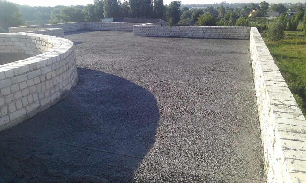- Application of heat-insulating PSB: flat roof with monolithic insulation