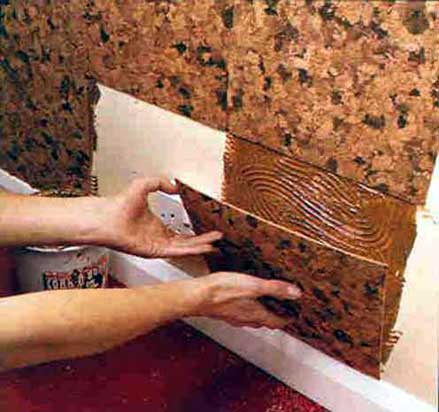 - When a thick, sticky glue is used for gluing, it will be easier to take it with a small spatula, and apply it with a notched spatula. The glue is applied only to the place of sticking, cork tile or a sheet of wallpaper from the cork, otherwise it will dry out very quickly. After careful application of the adhesive, the adhesive adheres to the wall as tightly as possible. It is best to do this with an assistant, because it is not possible to produce uniform pressing alone.