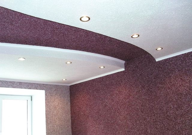 The design of the ceiling from liquid wallpaper consists of three stages: