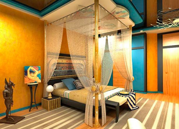 - Egyptian style in the bedroom.