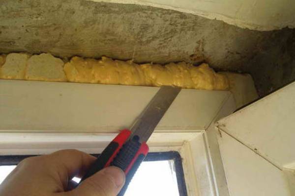 Tip. Cut off the foam not flush with the frame, but a little deeper. After that, the slice is treated with sealant to protect the foam from condensation, which reduces its thermal insulation properties.