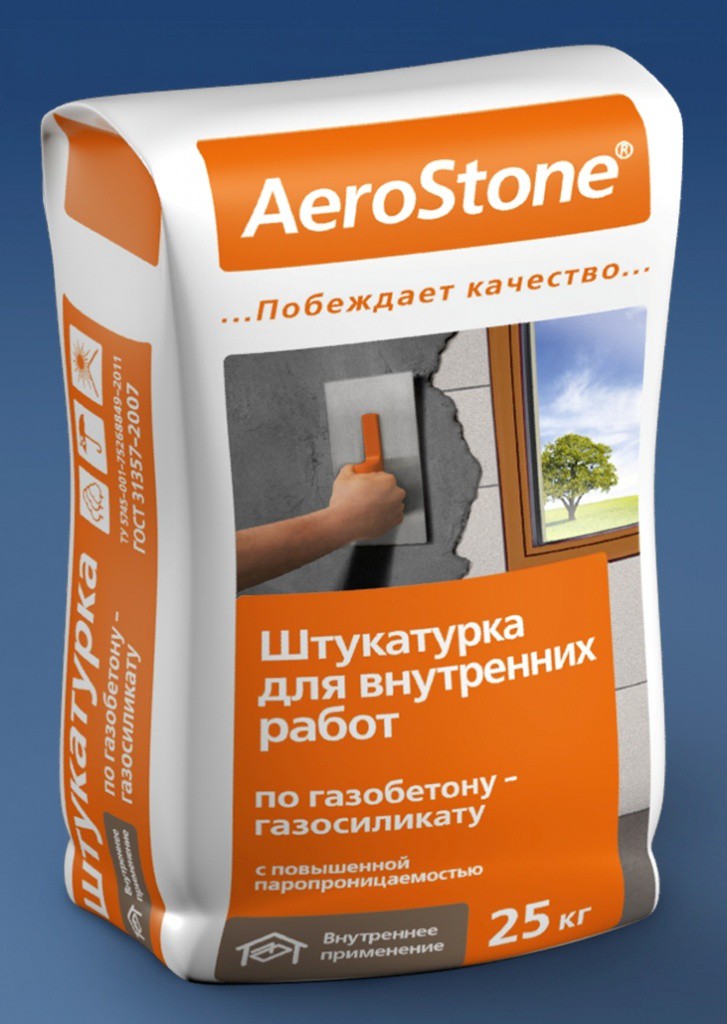 - It is much easier if the stucco of the house inside is produced with a purchased mixture. And by the way, if it is suitable for gas silicate, then it is suitable for aerated concrete (and not vice versa). Manufacturers often orient plaster mixes on both materials, which means that in addition to cement, lime is also present in them.