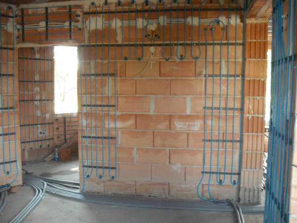 - The use of a warm wall system allows heating adjacent rooms with one loop. At the same time, hinges are laid on internal partitions made of materials with a sufficiently low resistance to heat transfer. It can be: