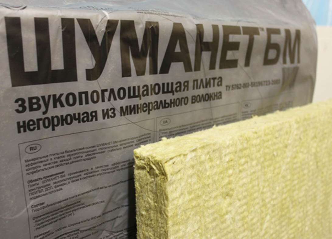 This insulation is made of stone wool with a layer of fiberglass lamination on one side. With a plate thickness of 50 mm, it has excellent sound absorption (up to 0.95). This material is good soundproofing on the walls and ceiling.