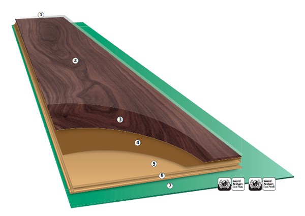 The quality of such a protective layer determines the class of the laminate and its wear resistance. - The second layer is the decorative design. It is a special high-quality paper or foil.