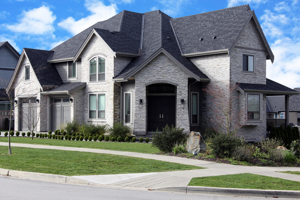 El revestimiento de piedra para la decoración al aire libre en la foto se ve presentable y en vivo. La piedra de imitación en el nivel del sótano se combina fácilmente con otras texturas en las paredes. Pero a menudo también hay fotos de casas completamente forradas con revestimiento de piedra.