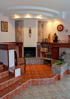 - ¿Dónde se puede observar el interior con mayor frecuencia con una piedra de revestimiento en la decoración? Probablemente en chimeneas, con material natural y artificial utilizado.