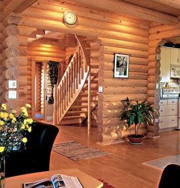 - La decoración interior de madera con árboles coníferos se utiliza para diseñar salas de chimenea y salas de estar, ver foto. También ampliamente utilizado en saunas para salones y otras cosas.