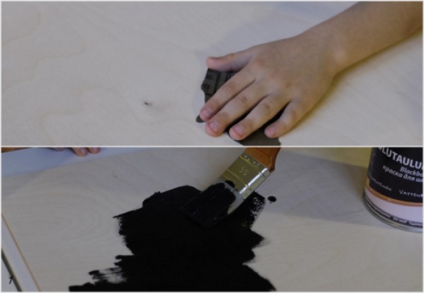 Cuando la superficie imprimada se seca, se puede recubrir con dos capas de pintura de pizarra, mezclándola completamente antes de usarla. Durante la operación, la pintura también debe mezclarse periódicamente. Los expertos dicen que es mejor trabajar con un pincel.