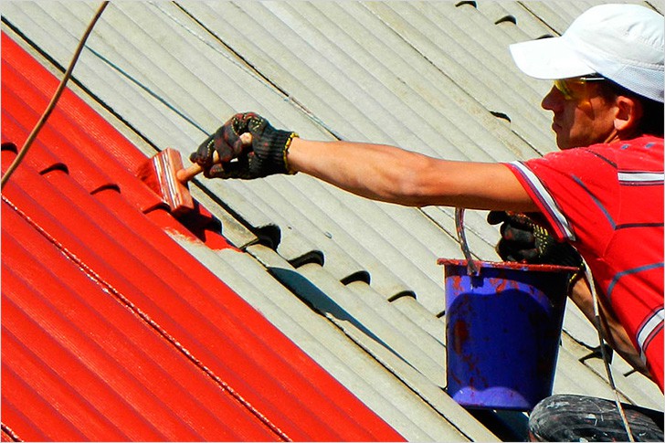- Para hacer frente a una serie de problemas de este tipo, por regla general, la pintura oportuna del techo ayuda. Se puede hacer una aplicación similar de compuestos colorantes con sus propias manos. La capa que se forma durante la pintura protege el cemento de asbesto de los efectos del viento, previene su desgaste y no permite que sufra destrucción biológica.