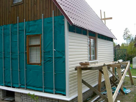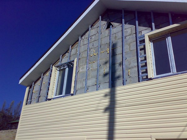 - Las fachadas con revestimiento de vinilo se hacen en el marco, y esto puede ser una ventaja. Aquí puede elegir el grosor del aislamiento usted mismo. Esto determina la altura de montaje del marco. Solo esto debe hacerse en la etapa inicial de construcción;
